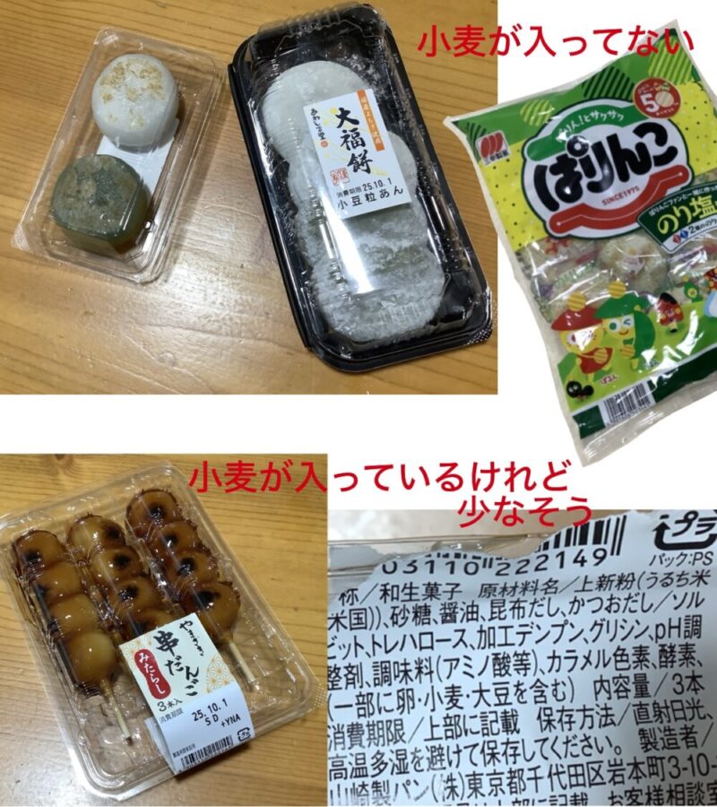 おにぎり以外には、市販のお菓子で❝できるだけ❞小麦が入っていない(または、入っているのが少なそうな)モノを食べるようにしている。